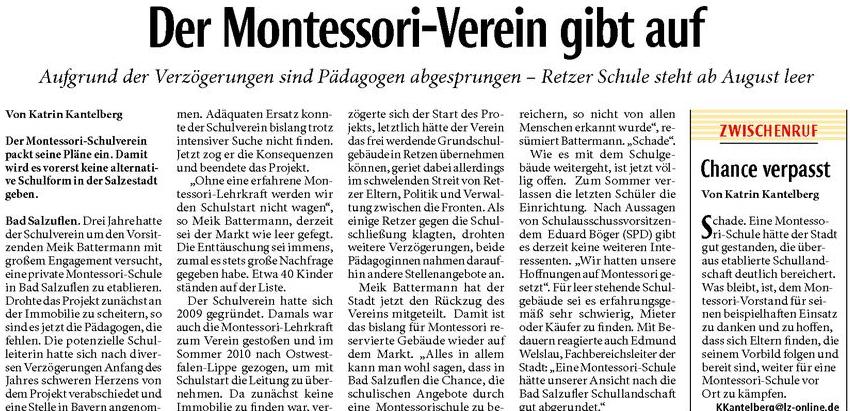 Alles in Allem kann man wohl sagen, dass in Bad Salzuflen leider die Chance als Bereicherung der schulischen Angebote durch eine Montessorischule so nicht von allen Menschen erkannt wurde. Schade!“